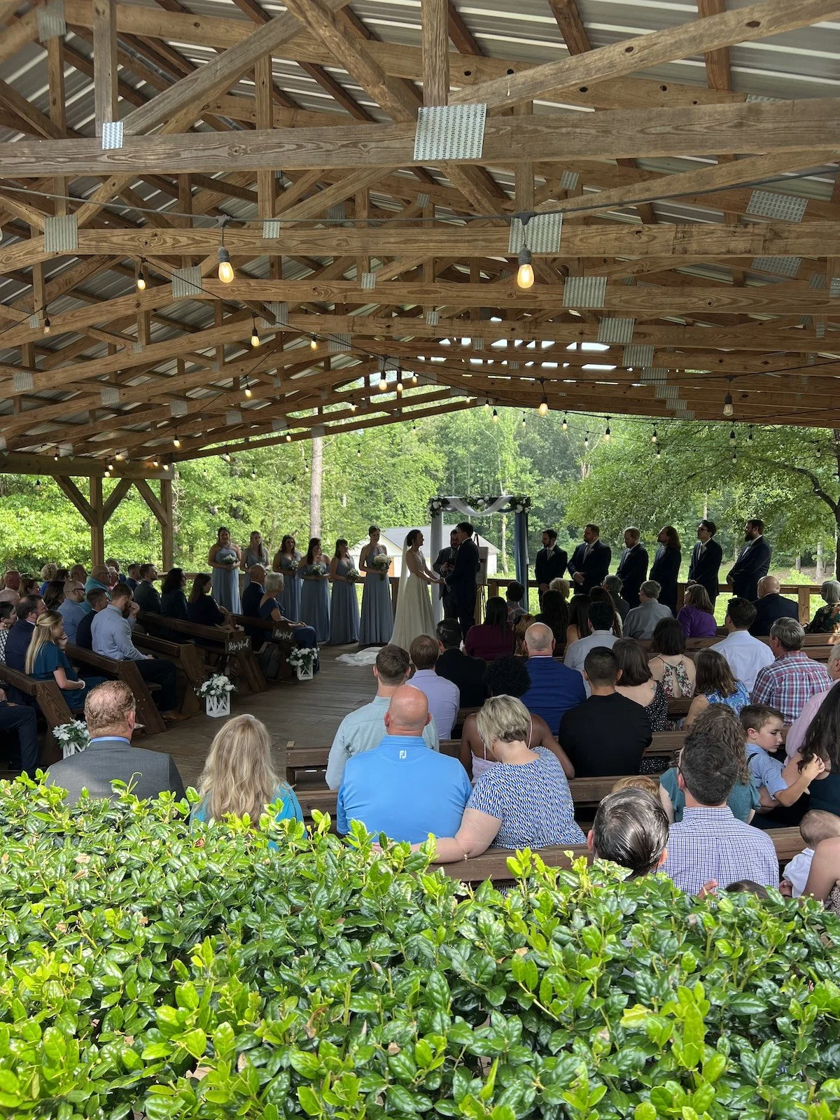 Koury Farms is one of my favorite weddings venues to DJ. This beautiful, rustic wedding venue is tucked away in rolling hills of Auburn, GA. Every moment here is carefully curated to create memories at every step of the way. The outdoor ceremony space is surrounded by tranquil greenery, with plenty of places for great photos, and for guests to partake in outdoor games during cocktail hour.