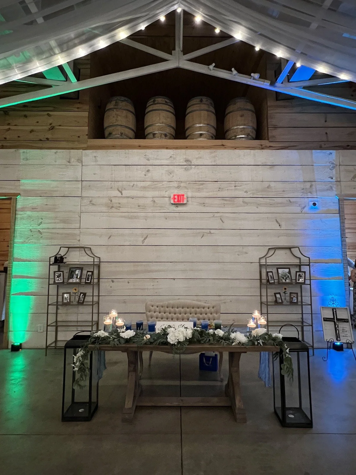 Dance lights and uplights are included with every wedding I DJ here and they look fantastic as the sun goes down and the stars come up. Perhaps best of all, they have great air conditioning (AC) so for those wam weather wedding, the indoor space is a nice reprieve from that classic Georgia heat.
